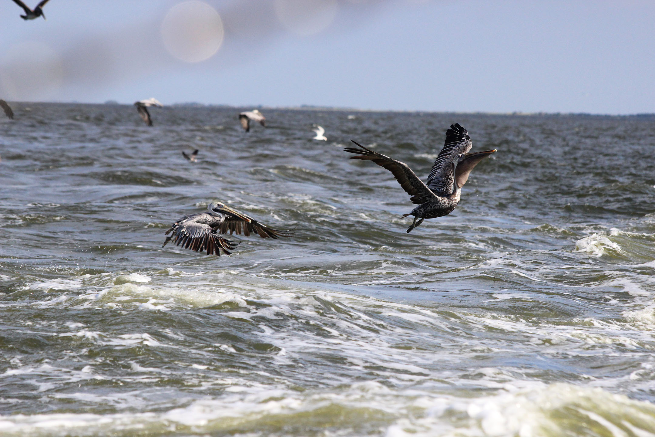 Fishing and shrimping vessels are not the only things that must travel farther out into the Gulf to catch anything. There are many types of birds such as pelicans that must fly farther into the Gulf in order to catch food. Many of these birds have adapted to this by following boats to catch any fish that may be brought to the surface by the wake created by the boat’s motors.