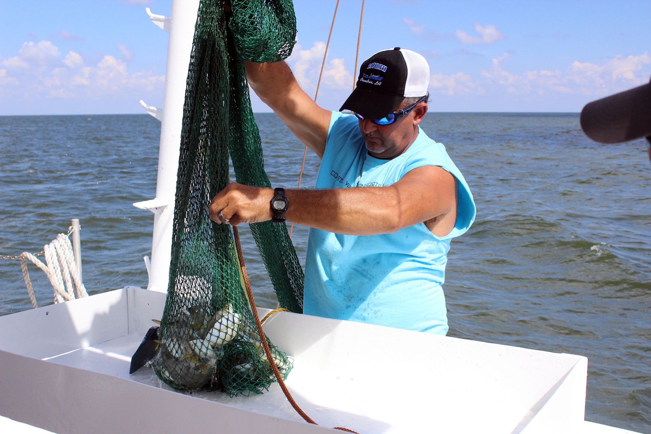 Carl Sevin is a ship captain for the LUMCON research facility. He captains a research vessel that is used to troll for the fish counts conducted. These fish counts tell the researchers where hypoxia effects are taking place in the northern Gulf of Mexico.
