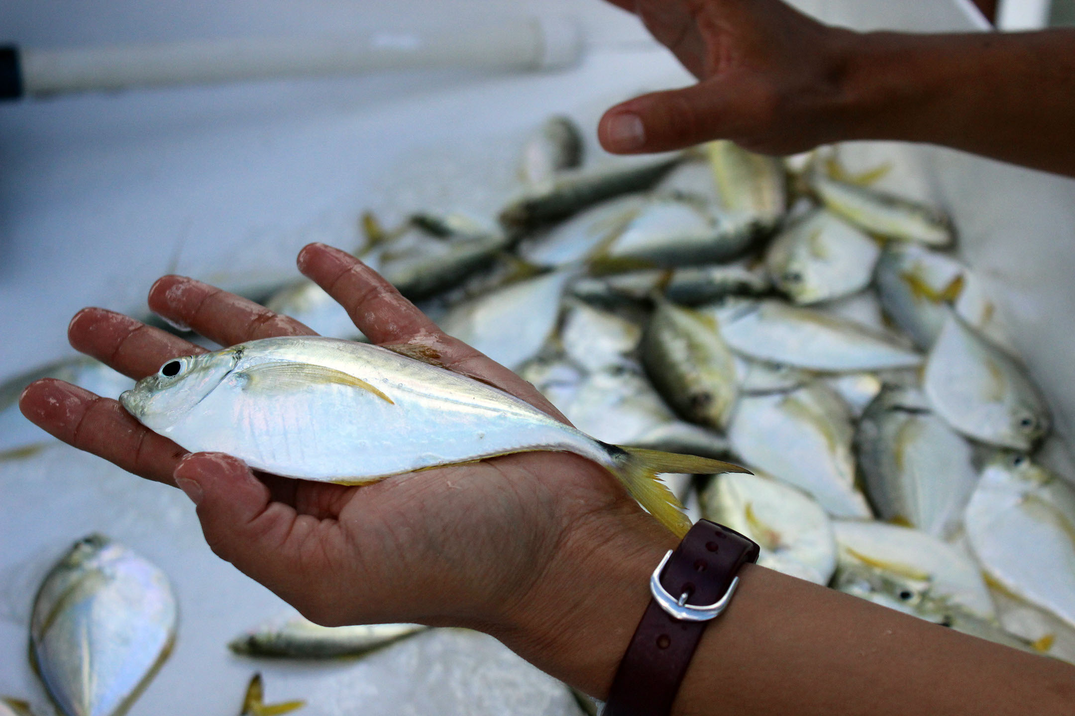 Researching vessels, such as those used by researchers at LUMCON, travel out into the Gulf to troll for fish to count. They do this by dropping a large net into the water and pulling it behind them for a recorded amount of time. When they bring the net into the vessel, they then count how many of each species they have.